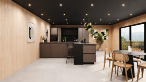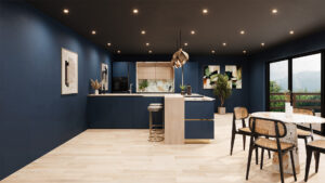 Le bar à l’arrière de l’îlot transforme l’espace en un coin repas pratique et convivial. Parfait pour un café, un déjeuner rapide ou des moments partagés en famille, il combine fonctionnalité et confort tout en s’intégrant harmonieusement à l’îlot.